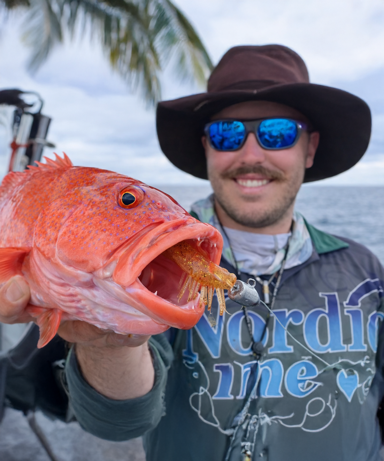Inshore with a bit more weight in the jig head, bouncing it across a nice rubble or weed bottom is perfect for species like Jew, Fingermark, Grunter, Flathead, Trout and the list goes on.