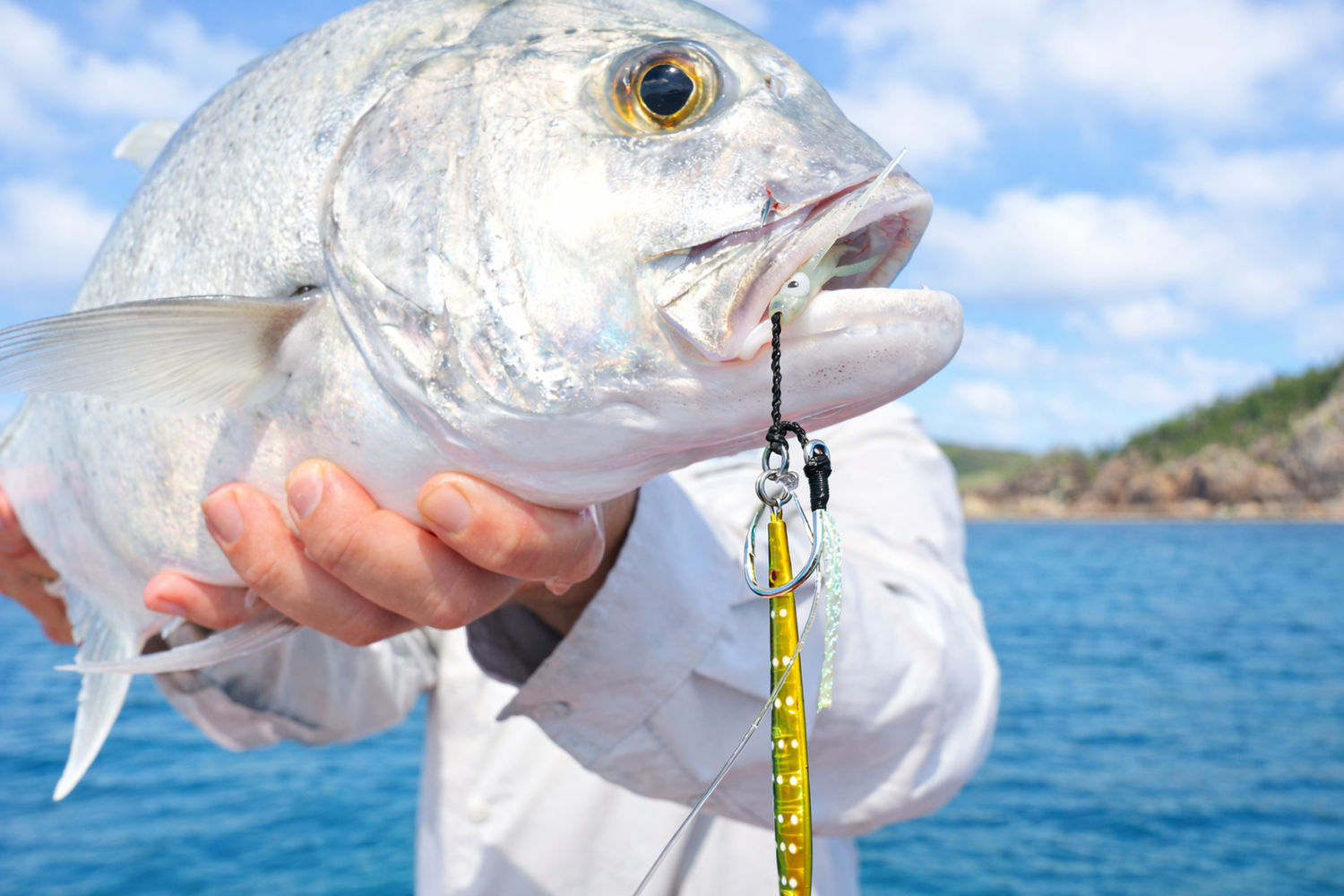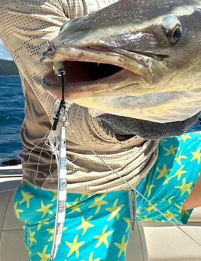 When using smaller jigs in shallower water around coastal and island headlands, rocky outcrops and coral reefs, you will soon find how effective micro jigs are. The variety of fish species a micro jig attracts is amazing, and as you move deeper, the fishing will only get better. Fishing out wider and hitting the bottom in 40-60 meters will get you quality reef fish. As the lure is brought up further, you’ll find those mid-water species like Trevally, Rusty Jobfish, Goldband Snapper and big Amberjack love them as well. If there are Mackerel around, a fast retrieval will